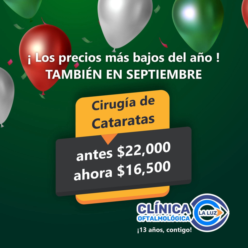 25% de descuento en cirugía de cataratas, cirugía combinada y cirugía de carnosidad, siiiii escuchaste bien 25% de descuento, ahora también en septiembre.