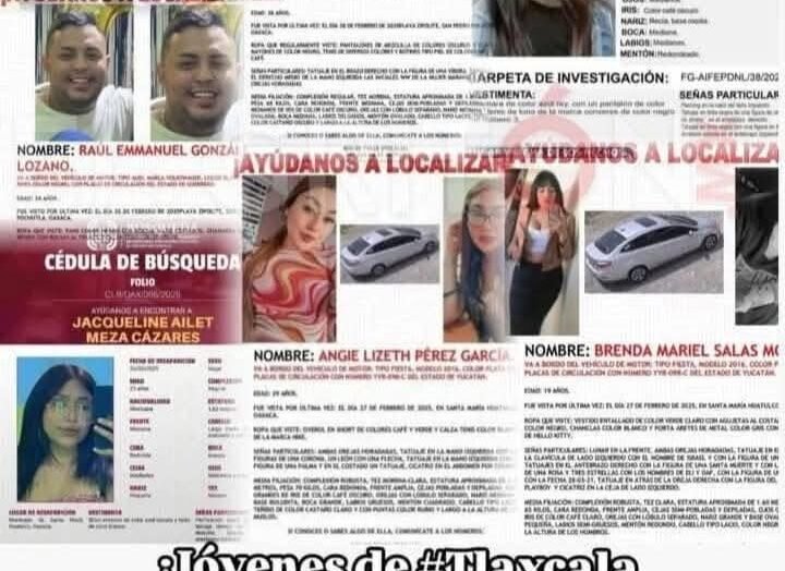 EN EL PUENTE CALAPA UBICADO ENTRE LOS LÍMITES DE OAXACA Y PUEBLA FUERON ENCONTRADOS 9 CADÀVERES. EXISTE LA SOSPECHA QUE DICHOS CUERPOS PERTENECEN A LOS JOVENES DESAPARECIDOS EN TLAXCALA MISMOS QUE SE DESAPARECIERON EN HUATULCO. FUERON ENCONTRADOS SIN MANOS Y CON EL TIRO DE GRACIA.