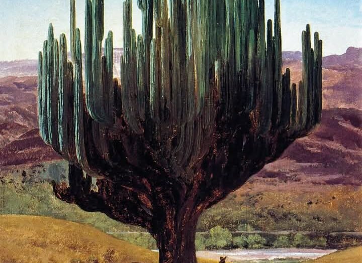 ¿Sabías que el Cardón es una especie de cactácea que llega a medir hasta 18 metros de alto y se estima que pueden vivir hasta 300 años?🌵Te compartimos este óleo pintado en 1887 por José María Velasco.