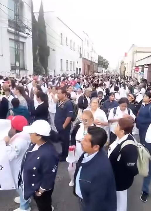 #Puebla_Puebla_Marcha .- Junio 10 2025 De Diferentes partes del estado poblano integrantes de la sección 25 del sindicato de trabajadores de la secretaria de Salud se reúnen para exigir mejores condiciones laborales y más insumos.