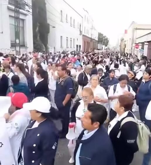 #Puebla_Puebla_Marcha .- Junio 10 2025 De Diferentes partes del estado poblano integrantes de la sección 25 del sindicato de trabajadores de la secretaria de Salud se reúnen para exigir mejores condiciones laborales y más insumos.