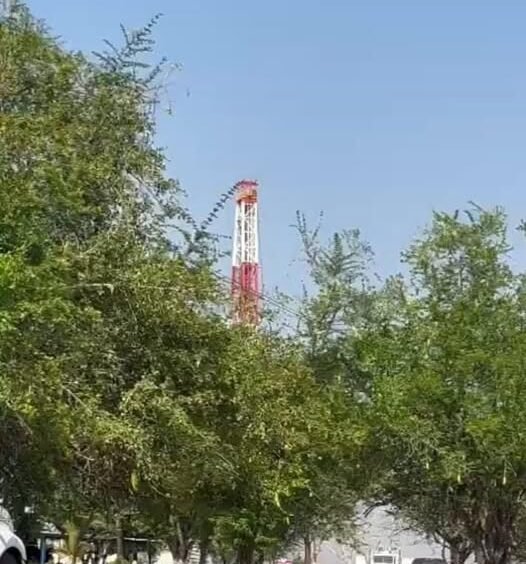 Barahunda una fuga de gas que no han podido controlar trabajadores de pemex.